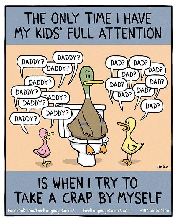 From chasing after kids to completely giving up on privacy, dads know that parenting is no picnic. But there are many occasions for humor and lightness.